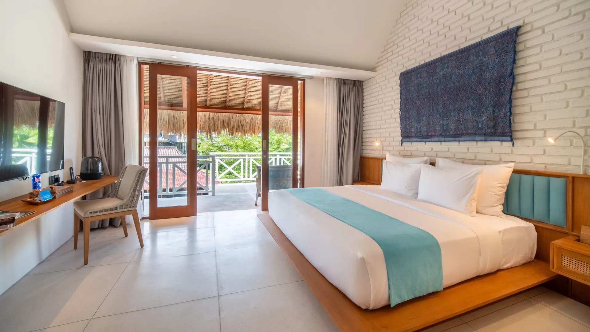IZE Canggu’s delightful and light-filled Deluxe Rooms are designed with Tropical style and simplicity, and the IZE brand’s relaxing blue-and-white colour scheme. They are ideal for couples on a short stay and offer the perfect tranquil haven after a busy day sightseeing or dining out in Canggu-Pererenan.