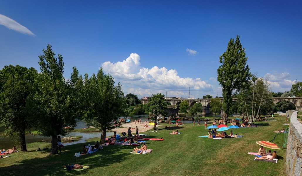 The riverside areas along the Cávado River feel especially pleasant, as the air is typically fresh with a gentle breeze, while the water conditions are calm and inviting for swimming.