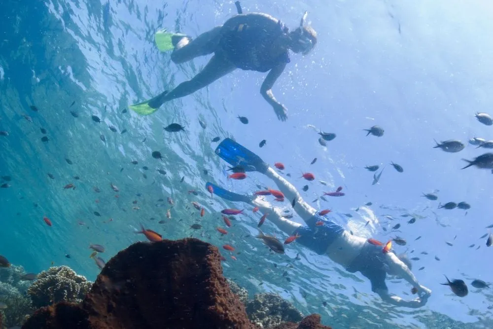 Once you dip your mask below the water, you’ll discover a vibrant marine world: colorful coral gardens, curious clownfish, graceful sea turtles, and the calming rhythm of the ocean.