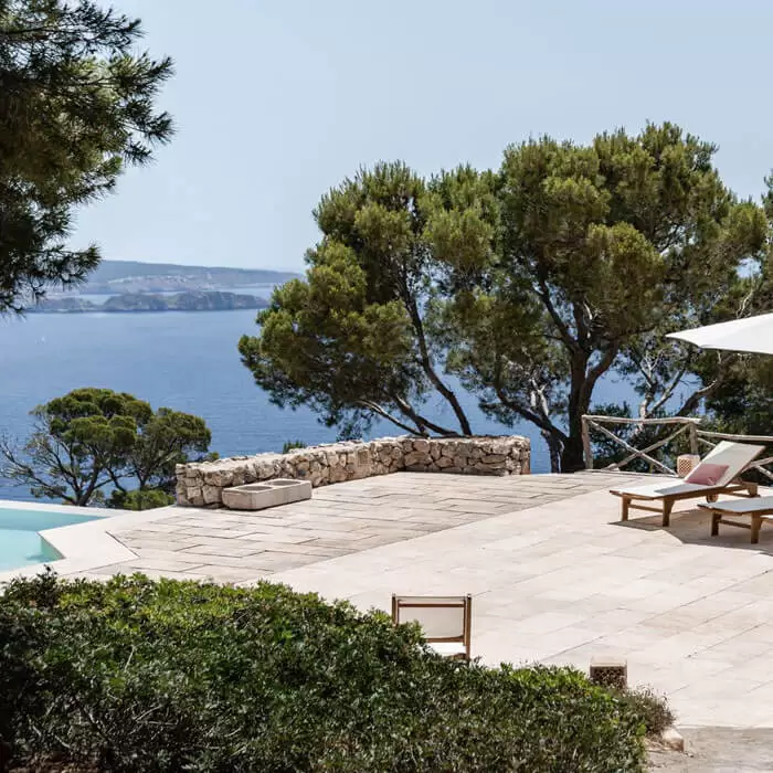 Designed with a seamless indoor-outdoor flow, Can Catalina invites slow living across a series of breezy lounges, shaded dining terraces, and sun-drenched gardens. Floor-to-ceiling windows capture the shifting blues of sea and sky, while minimalist interiors, warm textures, and thoughtful design create a quiet, effortless sense of home.
