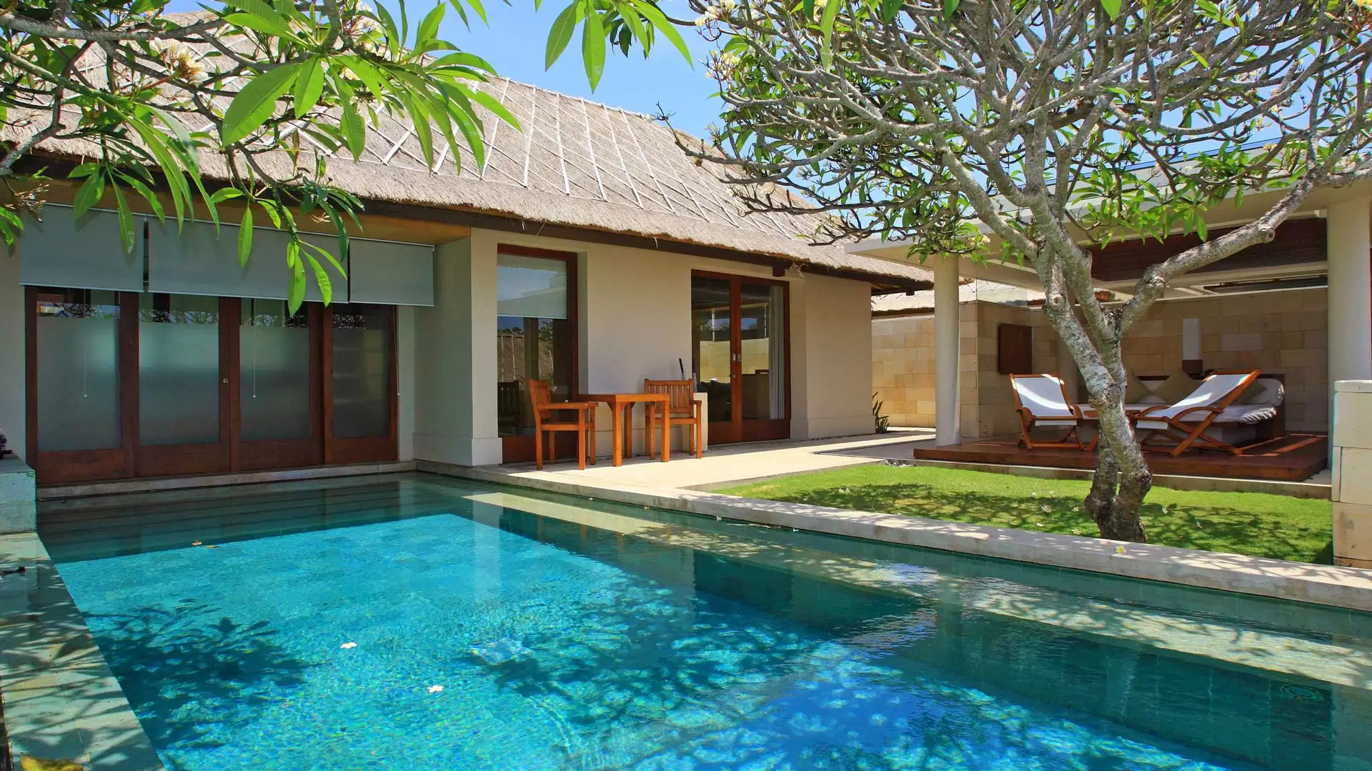 Carved wooden doors invite you into the garden of your private Single Pavilion compound where a bengong daybed and lounge chairs are prepared, ready for you to switch off and truly relax. The 8x4m turquoise pool glistens in the sunlight. The 240sqm pavilion features a spacious air-conditioned bedroom with a king-size bed ‘floating’ on a terrazzo platform and a living area with daybed and window seats. Above is an ornate, traditional ‘alang alang’ thatched roof. The bathroom has double-sinks, indoor and outdoor showers and – essential for romantics – a bathtub for two. The Single Pavilion is ideal for couples wanting absolute privacy and romance.
