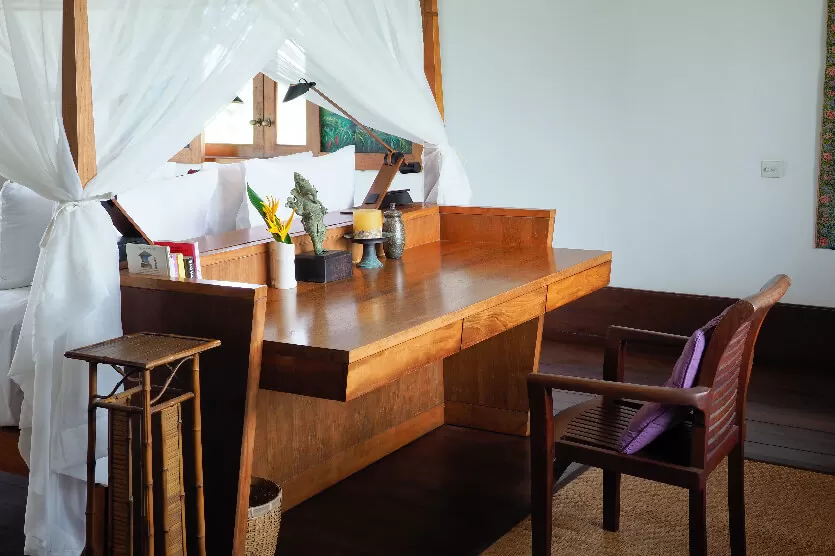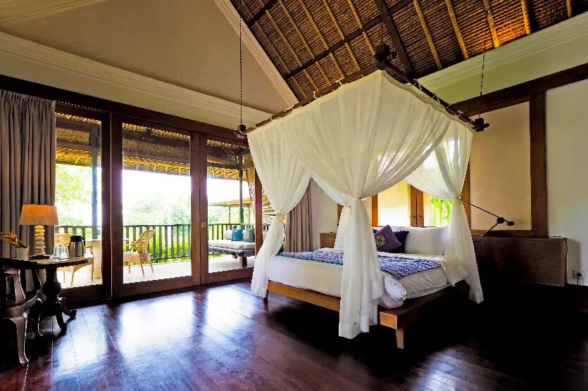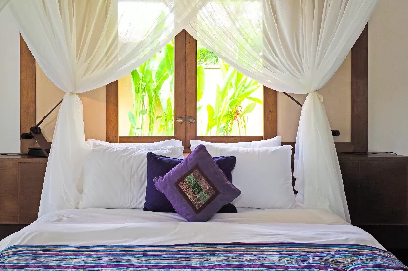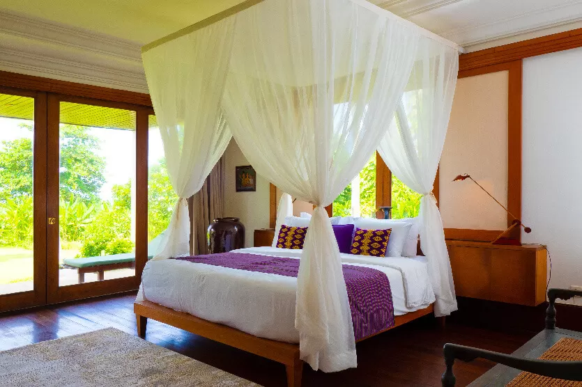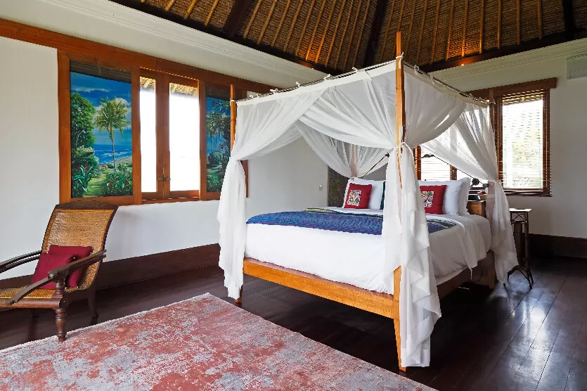 Each Villa Arika bedroom proudly presents gleaming polished floors with canopy netting 4-poster beds,
