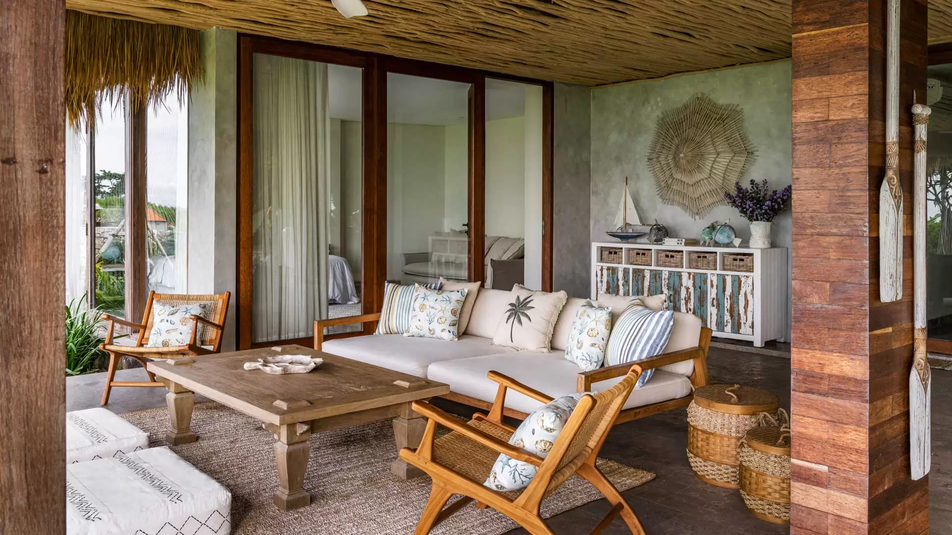 In the Main House, half of the upstairs area is the master suite featuring a four-poster bed, with sofas facing the 48″” TV, with massive ensuite bathroom with a bath, a rain and cascade shower plus a private sundeck. Step outside to find massive roof deck with heated Jacuzzi, and two more sets of sofas.