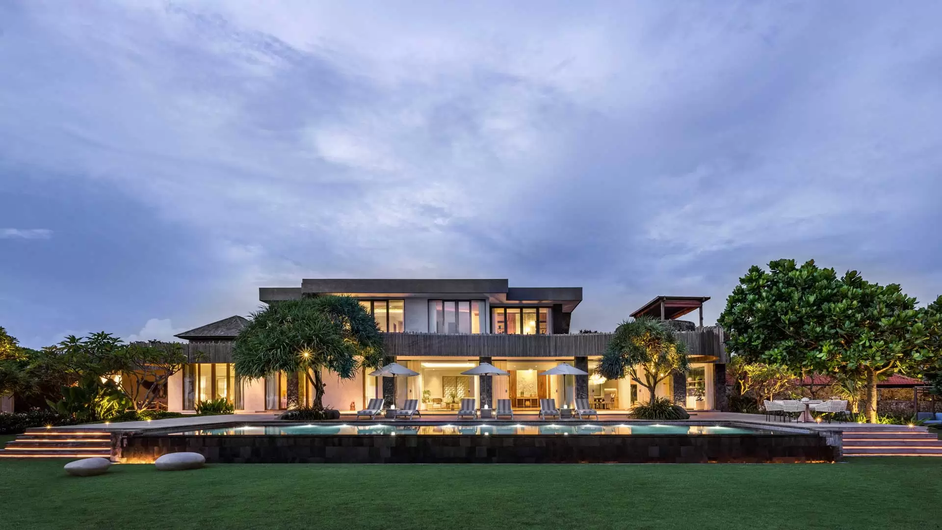 The Main House ground floor presents a second luxurious master suite complete with a king-size bed and two additional bedrooms – one with a queen bed and the other with twin beds, each with their own ensuite bathrooms, the spacious living room, state-of-the-art kitchen with a dining table seating 12, which offer stunning views of the pool and gardens.